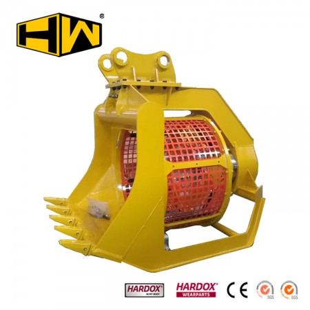 產(chǎn)品特點(diǎn):18-25噸級(jí)挖掘機(jī)用旋轉(zhuǎn)篩分網(wǎng)斗,適合篩分顆粒較小物料。篩網(wǎng)孔規(guī)格可根據(jù)物料大小多種選擇(可配20*20-80*80mm),更換方便,大大減少機(jī)器損耗和操作難度。