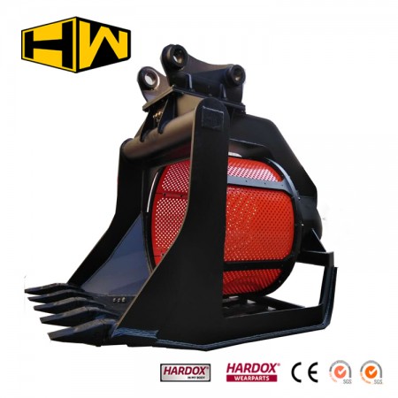 30噸級挖掘機用旋轉篩分網斗,適合篩分顆粒較小物料。篩網孔規格可根據物料大小多種選擇(可配20*20-80*80mm),更換方便,大大減少機器損耗和操作難度。 適用范圍: